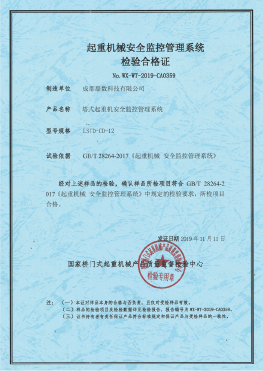 起重機械安全監(jiān)控管理系統(tǒng)檢驗合格證