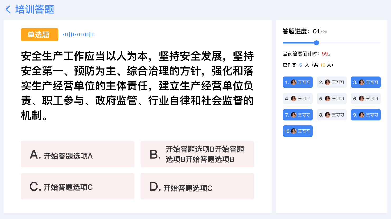 觸屏答題,自動(dòng)判卷,成績(jī)實(shí)時(shí)同步至住建局實(shí)名制平臺(tái) 。