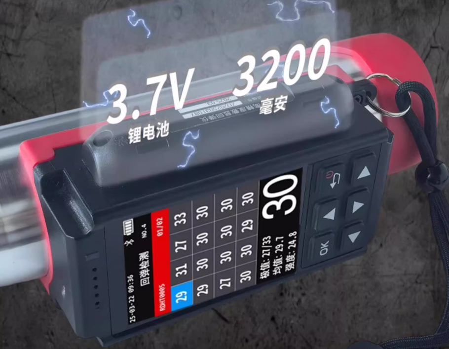 回彈值與強(qiáng)度值同步語音播報(bào),嘈雜工地?zé)o需看屏;液晶雙顯示,老人機(jī)式操作,2 min 上手。