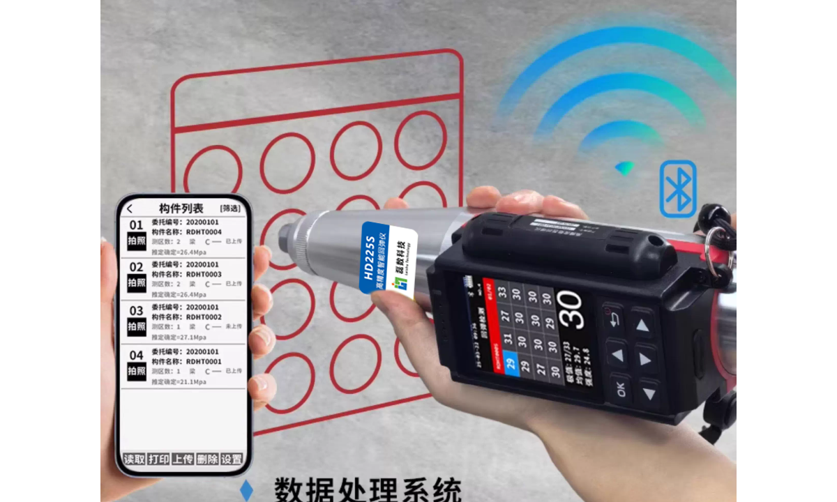 智能混凝土回彈儀是一款“機(jī)械回彈+數(shù)字傳感+云端報(bào)告”三位一體的一體式強(qiáng)度快檢儀。內(nèi)置藍(lán)牙/4G模塊,現(xiàn)場(chǎng)完成彈擊后自動(dòng)計(jì)算強(qiáng)度并秒傳智慧工地平臺(tái),實(shí)現(xiàn)“按一次→數(shù)據(jù)上云→報(bào)告自動(dòng)生成”的全流程數(shù)字化。