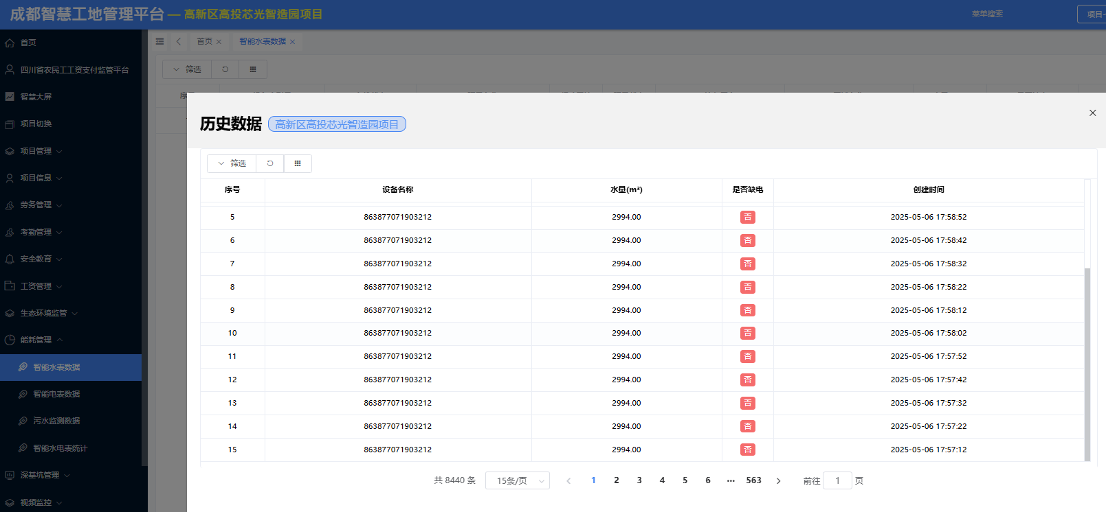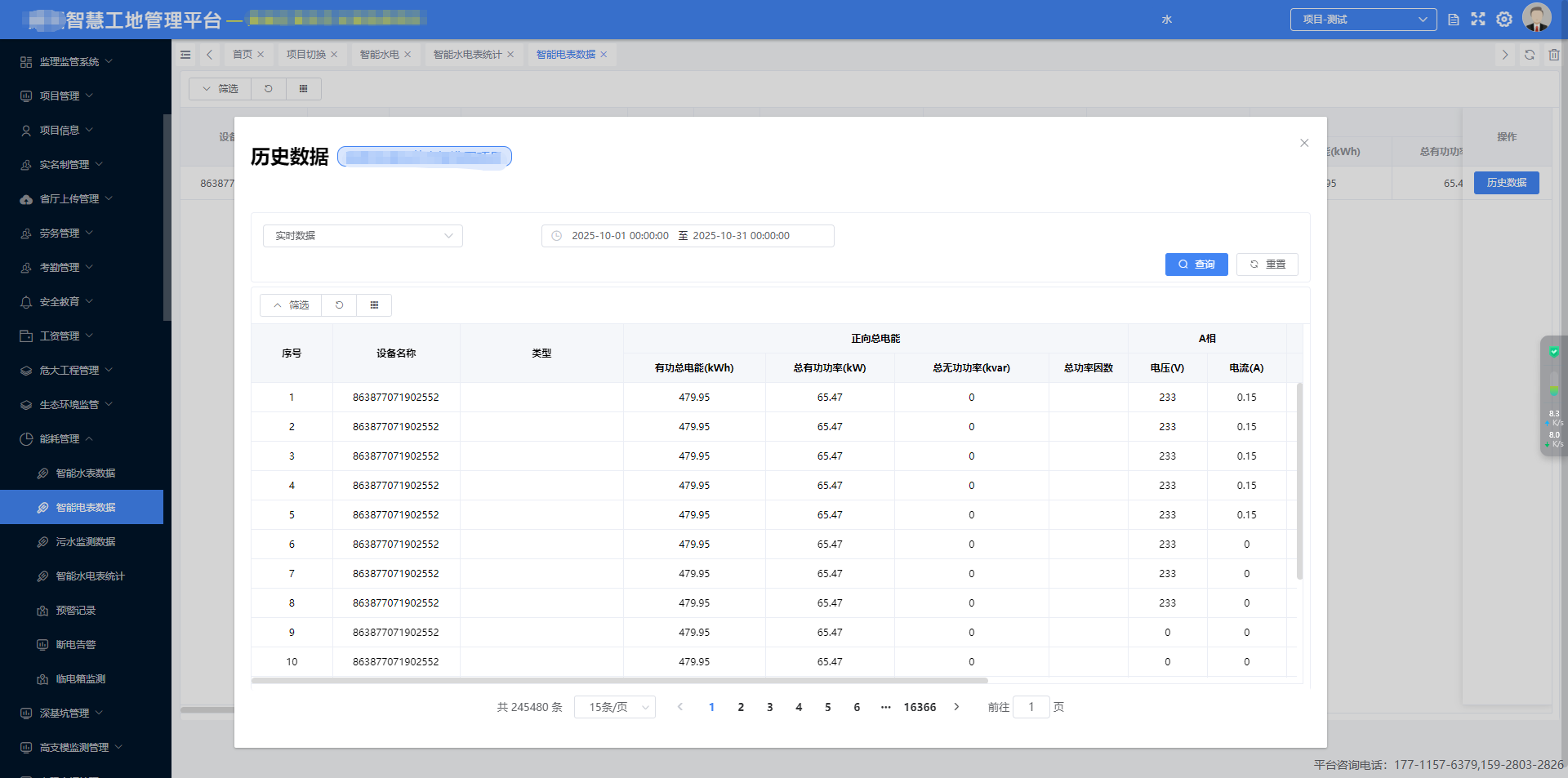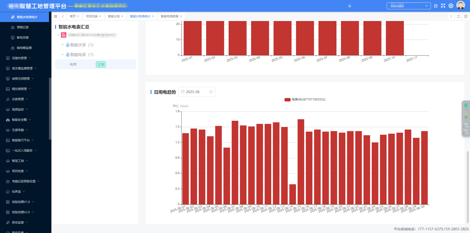 項(xiàng)目部通過智能水電監(jiān)測(cè)系統(tǒng),自動(dòng)統(tǒng)計(jì)各區(qū)域一定周期內(nèi)的用量,分析不同區(qū)域內(nèi)的消耗量,采取針對(duì)性的環(huán)保措施,節(jié)約資源。