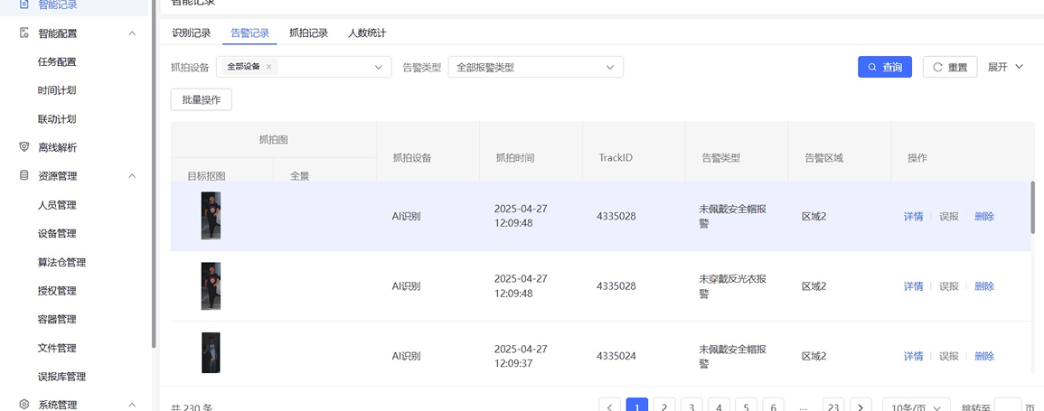 AI智能算法,分析現(xiàn)場異常行為,視頻留痕,比對分析